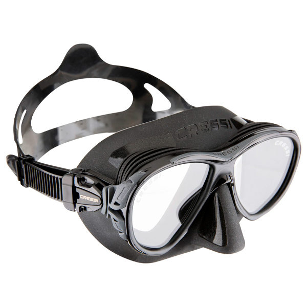 La máscara de Naxos es compacta y de menor tamaño que una máscara de buceo clásica, pero esta característica única no reduce el campo de visión, y gracias a las nuevas costillas internas, se adapta perfectamente a cualquier anatomía de la cara. Naxos, al igual que Quantum, no solo ofrece una mayor visión hacia abajo, sino que también evita el fenómeno del empañamiento al termorregular el aire cálido y húmedo que escapa de la nariz dentro de la máscara. Esto es canalizado por un sistema de membranas en el molde alrededor de los ojos y la nariz, que desvían el flujo hacia las paredes de goma y no hacia el vidrio. En el exterior de las paredes hay un sistema de refrigeración que consta de dos pequeños intercambiadores de calor que funcionan como radiadores. El efecto es que la temperatura dentro de la máscara se reduce, lo que la acerca a la temperatura exterior, y que las gotas de humedad quedan atrapadas antes de que el aire llegue a los vasos, evitando así que se empañen.