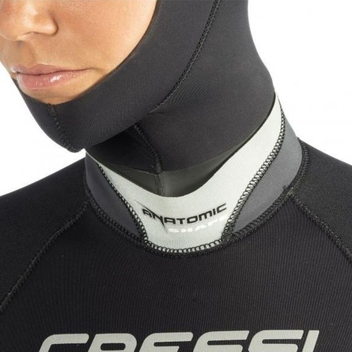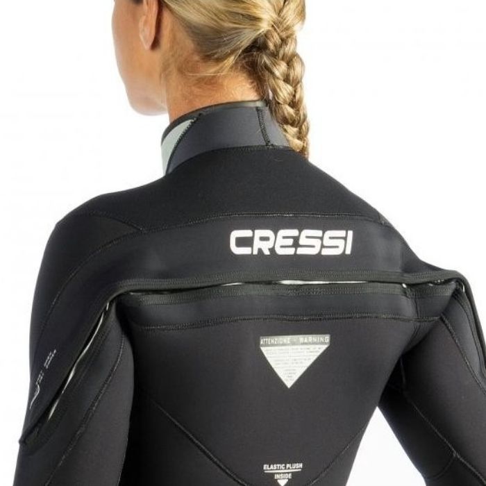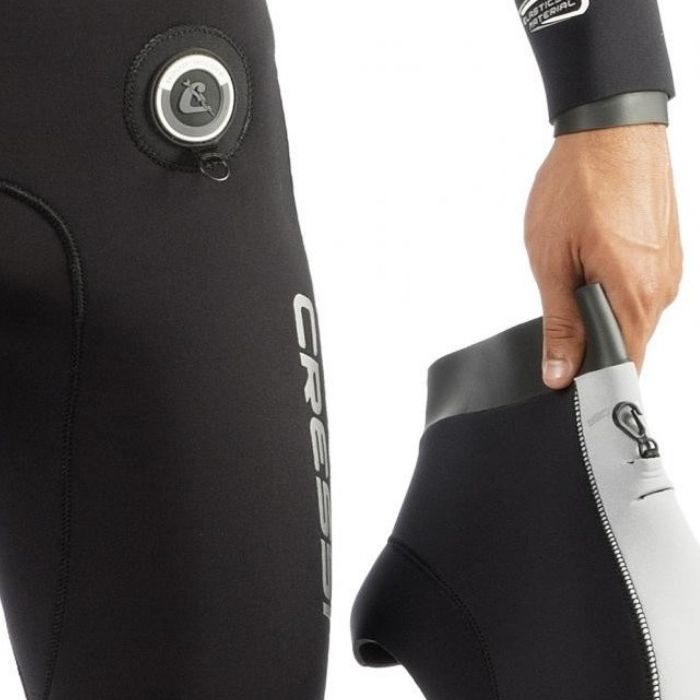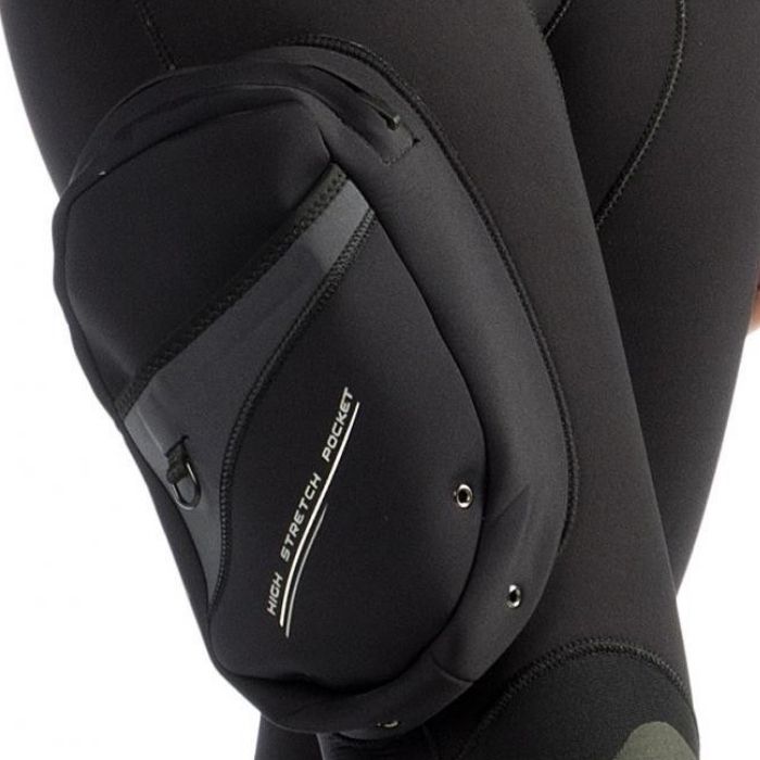 Traje semiseco con forro exterior 100% Ultraspan©  superelástico, para unir la tradicional hermeticidad de este formato de traje con una gran elasticidad y confort del buceador. Interior 100% X-Plush©, muy térmico, de rápido secado y deslizante tacto que facilita la colocación del traje. No limita la elasticidad original del neopreno y el tejido Ultraspan© exterior. Cremallera dentada estanca transversal TIZIP©. Completamente estanca pero con estructura dentada y flexibilidad equivalente a las de las cremalleras tradicionales de trajes húmedos. Menor necesidad de mantenimiento y mayor confort que con cualquier otra cremallera de traje semiseco. Limitador para evitar tensiones excesivas en la zona de máxima apertura y nuevo diseño y posicionamiento estudiado para limitar la tensión en los extremos en el proceso de extracción del traje. Sistema de estanqueidades mediante dobles manguitos sin cremallera con forro Ultraspan© en muñecas y tobillos, un sistema muy estanco ya que actúa a modo de sándwich sobre el guante o el escarpín, facilitando la inserción y extracción del traje. Cuello en neopreno de 3mm, con forro interior Ultraspan© y exterior Glide Skin©, para facilitar la colocación del traje y la estanqueidad de esta crítica zona, especialmente en el caso de las buceadoras, con un perímetro de cuello reducido. El patronaje Anatomic Shape prevé el perfil idóneo del cuello respecto del pecho (120º) y evita la opresión en esta zona. Una segunda solapa exterior mejora la estética y la estanqueidad del cuello. Refuerzos elásticos en rodilla/espinillas en Tátex que prácticamente mantienen la elasticidad original de la zona donde son aplicados y evitan la erosión. Tejido de refuerzo Small Diamond© en zonas de gran erosión como hombros, espinillas y nalgas. Sistema de anclaje de la capucha en la cadera mediante un pequeño mosquetón de plástico.Bolsillo integrado en cadera derecha con mosquetón interior y doble compartimento.